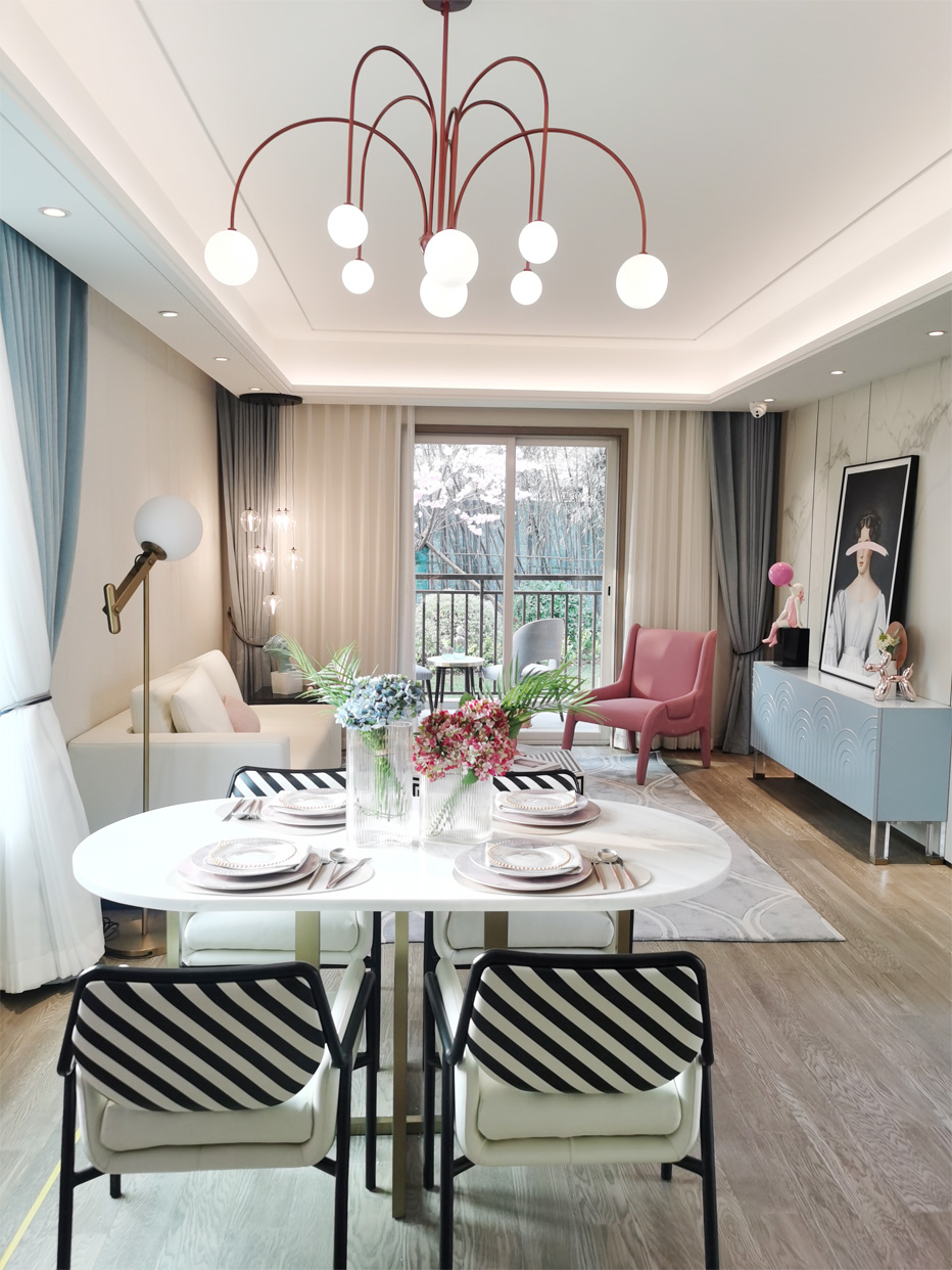 海林·康桥官邸售楼部,坐落在武汉市新洲区平江大道湖北大学阳逻校区旁,总建筑面积约1500㎡。其中,售楼部约880㎡,样板间共计三个,分别为A户型:108.99㎡,C户型:118.09㎡,D户型100.69㎡,另外办公区域约250㎡。施工工期从2019年9月26日至11月30日,历时65天顺利完工并验收。